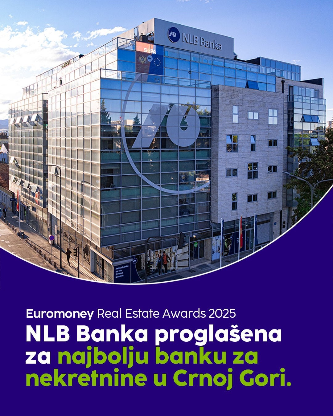 NLB Banka AD Podgorica nastavlja da potvrđuje svoju lidersku poziciju u bankarskom sektoru Crne Gore. Nakon što je prošle godine osvojila dvije najprestižnije međunarodne nagrade za najbolju banku u Crnoj Gori – od uglednih finansijskih magazina Euromoney i The Banker – kao i priznanje Euromoney za najbolju banku u oblasti nekretnina, i ove godine stiže novo priznanje. U kategoriji Best Bank for Real Estate in Montenegro 2025, Euromoney je po drugi put zaredom prepoznao kontinuirani napredak i snažne rezultate Banke u segmentu finansiranja nekretnina, investicija u poslovnu infrastrukturu i podrške razvojnim projektima širom Crne Gore.